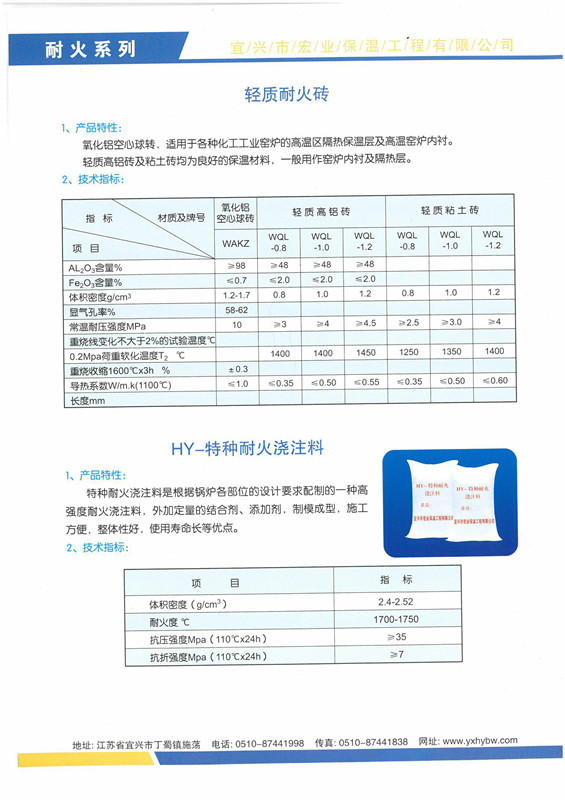 輕質耐火磚、HY-特種耐火澆注料