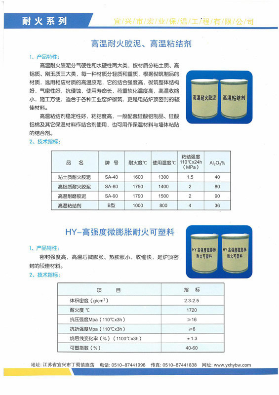 高溫耐火膠泥、高溫粘結(jié)劑、HY-高強(qiáng)度微膨脹耐火可塑料
