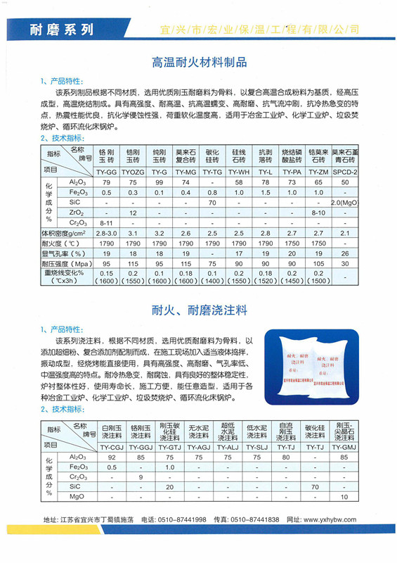 高溫耐火材料制品、耐火、耐磨澆注料